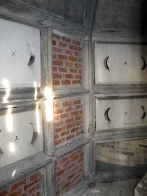 Several of these photographs show the inside of the Molson mausoleum; however, no one entered the mausoleum, it was just a matter of putting the camera where the door was slightly ajar. You can see that there is lots of room for future deceased members of the Molson family. Since these photographs were taken (around 2009). this mausoleum, and others, have had the entrance secured so that it is no longer possible to look inside.